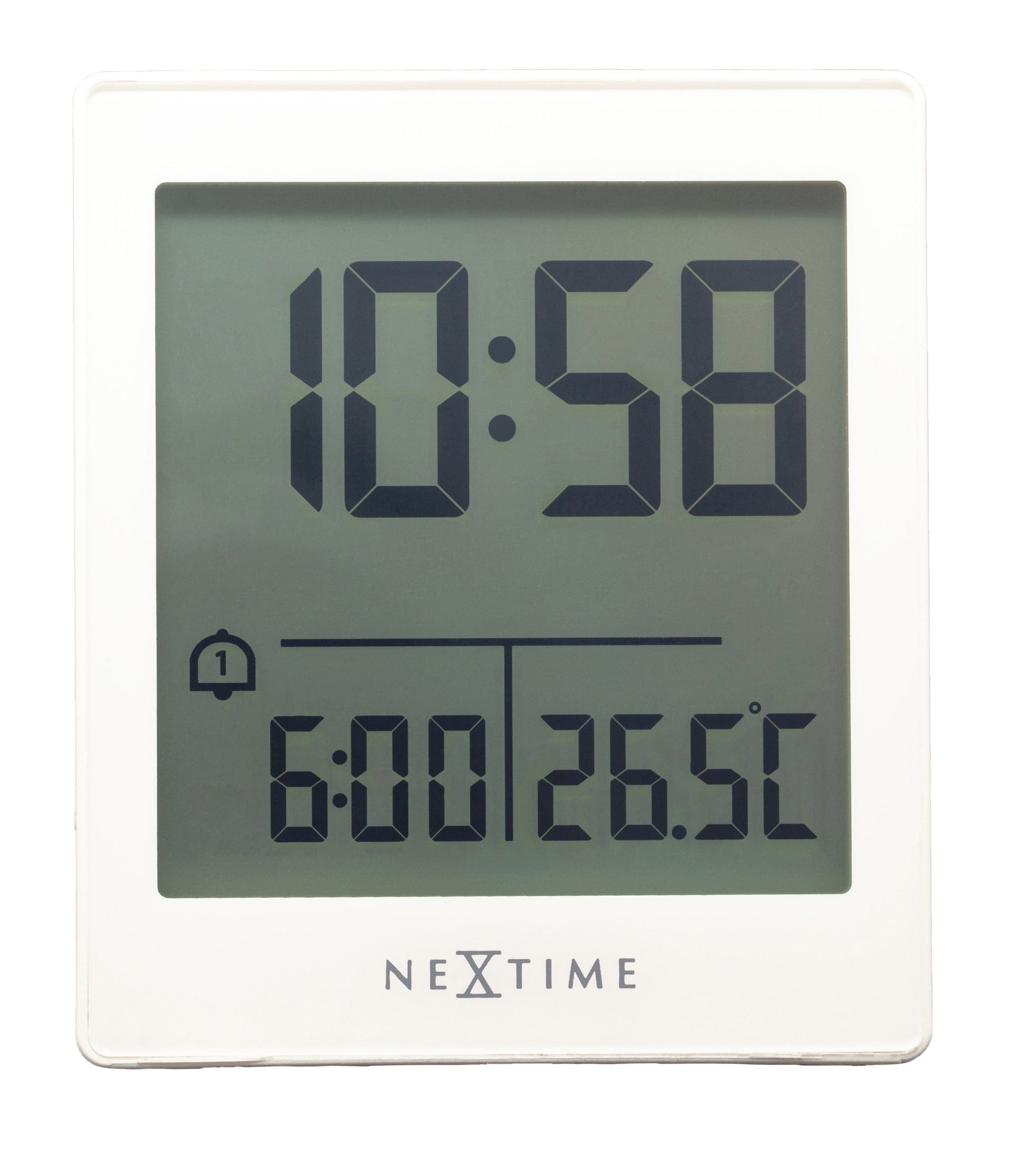 Introducing NeXtime's "Wake Up" Digital Table Alarm Clock – a modern 7.7x8.9x3cm timekeeping marvel. Featuring Radio Controlled Clock (RCC) precision, it not only wakes you up on time but also displays the temperature. In crisp white or black ABS, the "Wake Up" combines functionality with contemporary style, ensuring a smart and timely start to your day.