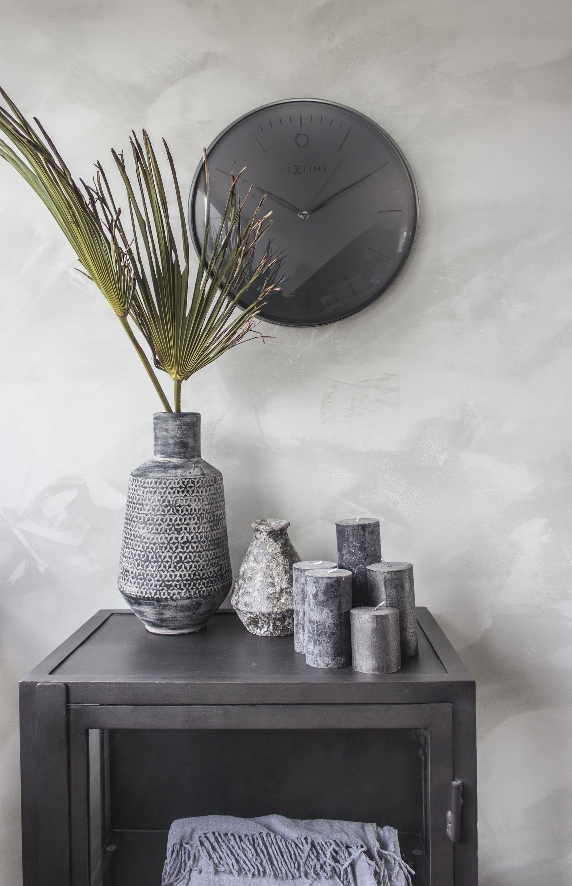 The NeXtime "Glamour" is a wall clock with a chic and minimalist design. The clock has a slim black metal case, dome shaped glass, a black dial and raised hour indication. This clock brings a Nordic style to your interior, less is more! This clock is silent and runs on 1 AA battery (not included).