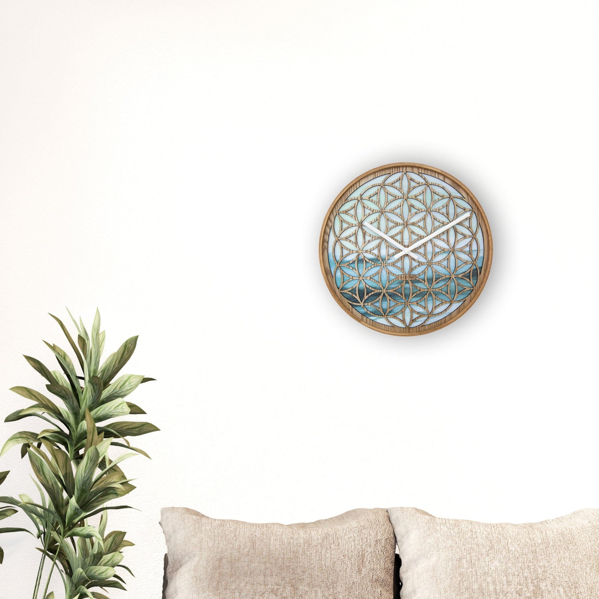 The NeXtime Concord silent wall clock (40cm) features natural wood cut in a harmonious floral pattern on top of an airy water colour background in a calming green. Designed by Jett Scheib, it creates a connection to nature and will definitely bring elegance and peace to the room. This clock uses 1 x AA battery (not included).