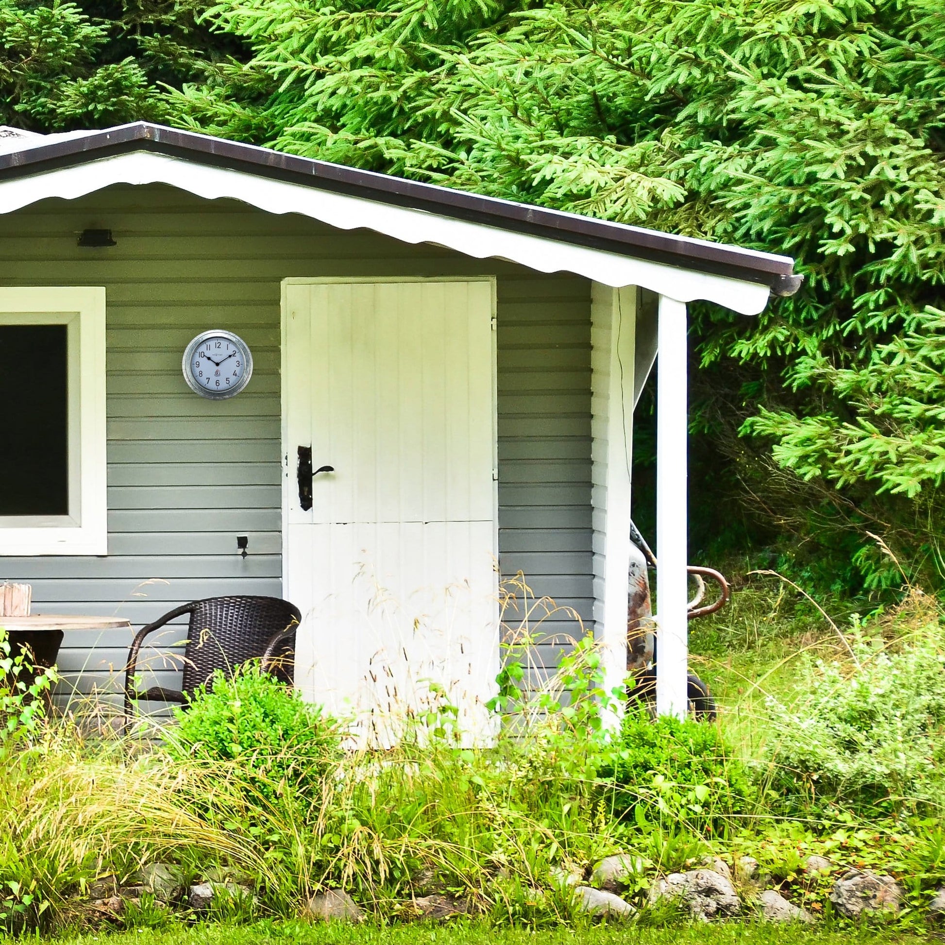 Weatherproof Outdoor Wall Clock - 22cm - Metal - Galvanized Poppy